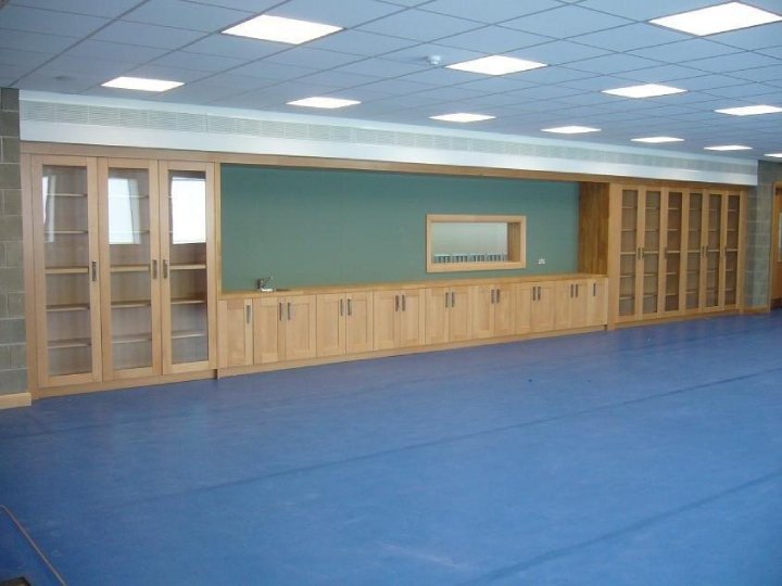 Fit-out of teacher training college in Shaker Beech with solid Beech worktops and panelling.